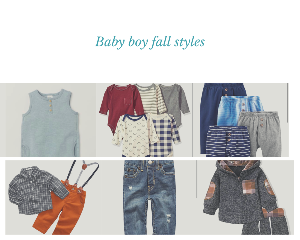 I am big into neutral colors, I like white’s blacks and greys best but am loving the little pop of autumn colors, burnt orange, reds and burgundy’s. Most of what I picked out for Noah is pretty basic and more on the casual side but I also added some fun outfits in the mix as well in case we do some family photos or apple picking and what not.