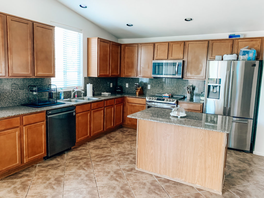 Today is the kitchen. Our next messiest room in the house. I don’t know about you guys but we always have thigs sitting on the counter and the pony wall. It drives me nuts but we do it anyway.