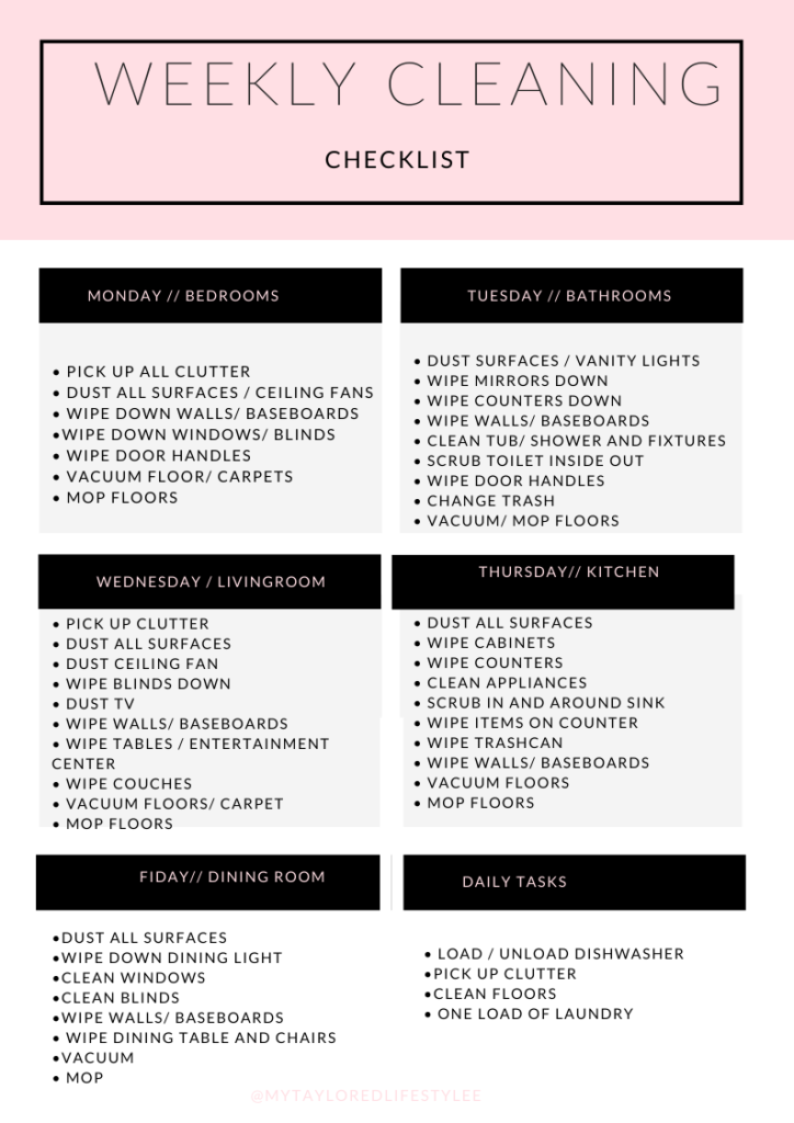 Before having a kid, my house stayed cleaned and organized during the week so on my weekend I dedicated a few hours to do one deep cleaning. A lot has changed in the last 2 years. Now I have a little toddler running around throwing toys and drawing on my walls. I found myself getting overwhelmed with trying to keep up so I created a schedule for myself that eased my mind and made cleaning much easier to me. Although I like to stick to a schedule, if everything doesn’t get done I try to give myself grace and look at all of the things that I did get done.