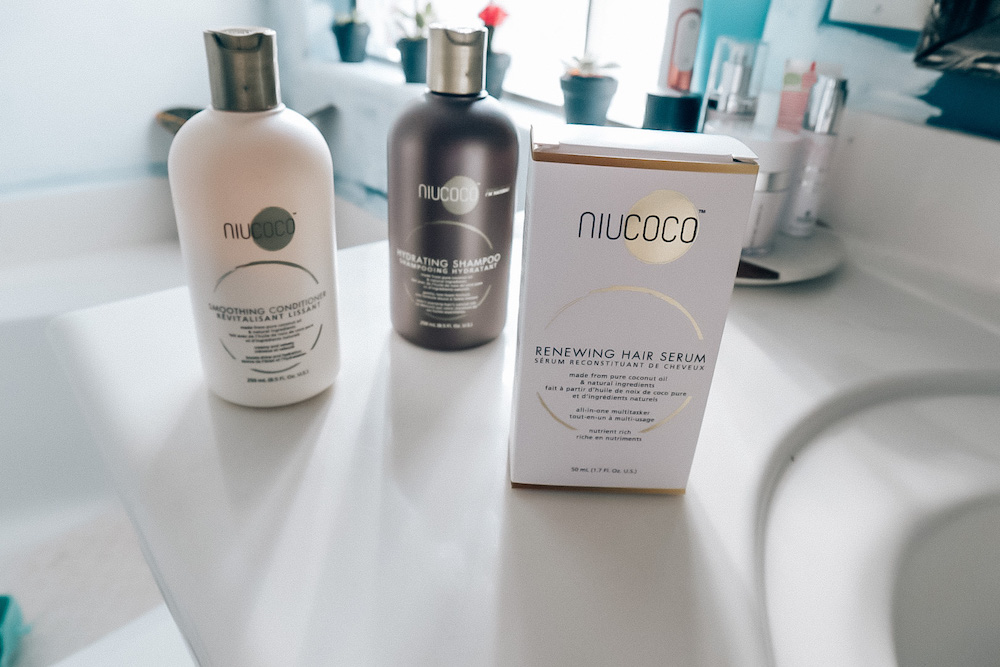 I’ve been asked about my hair care routine a lot lately, and I have been testing out a new hair care system for about 3 weeks so I wanted to make sure I used it enough to be able to give you guys an honest review. The products I have been using are from a rand called Niucoco. They sent me the hair essentials bundle which included shampoo, conditioner and a hair serum. I am pretty picky and have had to return a lot of shampoos and conditioners because a lot of products don’t work with my hair. My hair, like my skin is combination. It can get really oily at the roots and really dry and frizzy at the ends which makes it hard to know what products to use. After 3 weeks of using these products I am extremely happy and have had no issues with my hair at all.